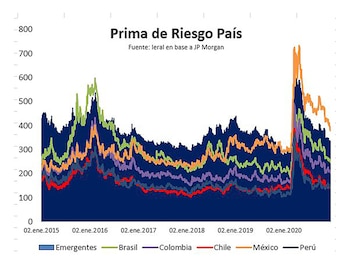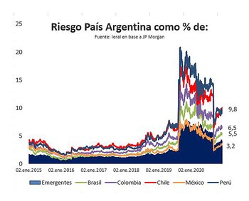 Así, el riesgo-argentino es hoy casi diez veces más alto que los de Chile y Perú (el país de la región de más alta tasa de contagios y muertes por covid-19), seis veces y media más que el de Colombia, cinco veces y media más alto que el de Brasil y más del triple del riesgo-mexicano, uno de los países que peor manejó la pandemia. Como puede verse, en relación al de sus vecinos, el riesgo argentino está más o menos como estaba a fin de 2019, pero después de haber restructurado USD 66.000 millones.