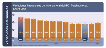 El ritmo de suba de precios no cedió en enero y la inflación del primer mes del año alcanzó el 4% y repitió el récord que había alcanzado en diciembre, según informó este jueves el Indec. En los últimos doce meses, la inflación acumuló una suba de 38,5%. La canasta de alimentos y bebidas no alcohólicas también tuvo un alza significativa de 4,8%.