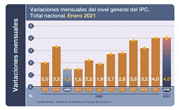 Para adelante el panorama en lo que resta del primer semestre tampoco es alentador. No sólo febrero y marzo tienen un piso de inflación que apunta a más de 3%. El segundo trimestre se deberá comparar con el mismo período del 2020, que fue el momento más duro de la cuarentena. En abril la inflación fue de 1,5%, repitió en mayo y en junio saltó al 2,2%. Hay una altísima probabilidad de que en este período que viene la suba de la inflación se ubique bien por encima de estos valores.
