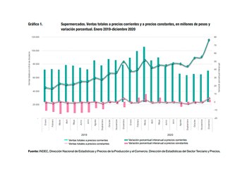 Las ventas a precios constantes de diciembre de 2016, durante diciembre de 2020, sumaron un total de 29.929,5 millones de pesos, lo que representa un aumento de 2,6% respecto a diciembre de 2019.
