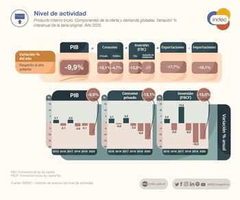 Esta semana, el Indec publicó el dato oficial de la caída del PBI durante el 2020: fue una contracción de casi diez puntos, algo menor que lo que se esperaba a medidos del año pasado, pero de todos modos un número histórico que revela la segunda peor crisis económica de la historia argentina, detrás del colapso d ela convertibilidad.