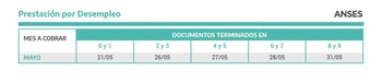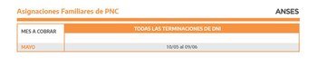 El calendario de pagos va del 10 de mayo al 9 de junio, para todas las terminaciones de DNI