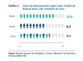 De acuerdo al informe difundido por el gobierno porteño, el 9,4% de desempleo general para toda la Ciudad mostró un 8,2% entre los varones y un 10,6% en las mujeres, en tanto en la clasificación por región, los barrios de la zona Norte tuvieron un 5,4%, los de la zona Centro un 8,8% y los de la zona Sur un 14,2 por ciento.