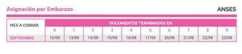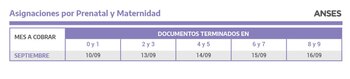 Mientras que la Asignación por Prenatal y Maternidad se pagará desde el viernes 10 hasta el 16 de septiembre, de acuerdo a su terminación de DNI.