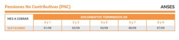 A su vez, las (PNC) se abonarán desde el 1° hasta el 7 de septiembre, según finalice su documento.