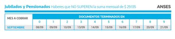 A partir del miércoles 22 y hasta el 28 de septiembre, cobrarán los jubilados y pensionados cuyos haberes superen los 29.135 pesos.