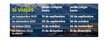 Para viajar en enero 2022, serán válidos comprobantes emitidos entre el 12 de agosto y el 31 de octubre de 2021. Los comprobantes podrán ser cargados hasta el 20 de noviembre.
