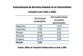 Y, frente a esa nueva agenda, necesitamos readecuar las políticas públicas. Fíjese que las exportaciones de nuestro país de servicios basados en el conocimiento han aumentado a un ritmo de apenas el 1,3% anual entre 2010 y 2020, cifra que compara con el incremento de Uruguay, del 13,7 anual en igual período, o el de Costa Rica, que lo hizo al 7,3% anual. Y no es porque hayamos llegado a un “techo” en esta materia: en servicios basados en el conocimientos exportamos 134 dólares por año y por habitante, cuando Uruguay está en 526 dólares por habitante y Costa Rica en 720 dólares. Estas comparaciones cuestionan al menos dos cosas de la Argentina: los efectos colaterales de la elevada brecha cambiaria y la política educativa.