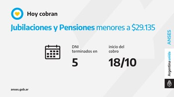 Las sucursales bancarias habilitadas atenderán por ventanilla a jubilados, jubiladas, pensionados y pensionadas con documentos terminados en 5 cuyos haberes no superen la suma de 29.135 pesos.