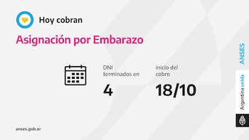 Con la utilización de la tarjeta de débito, hoy cobran la Asignación por Embarazo las titulares con documentos finalizados en 4.