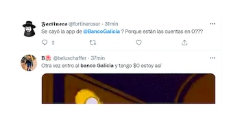En las redes apareció la sorpresa y el reclamo de los usuarios, como @elenaoni, que preguntó: “@BancoGalicia qué pasa con la app y home banking? Desde la semana pasada que anda muy mal. Ingreso a mi cuenta y tengo $0, cuando tengo dinero en la cuenta…”. Otro usuario, @pablopeusner, preguntó: “@BancoGalicia otra vez se cayeron todos los sistemas?”