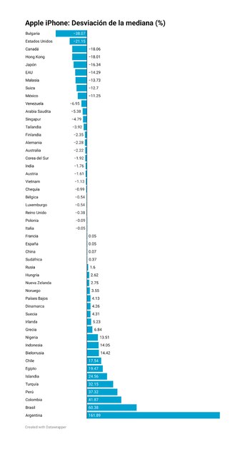 Si la comparación es con Chile, la brecha de precios es aún mayor. En el país trasandino el valor del iPhone 12 es de 1.009 euros, esto arroja un valor un 55% más económico en dicho territorio.