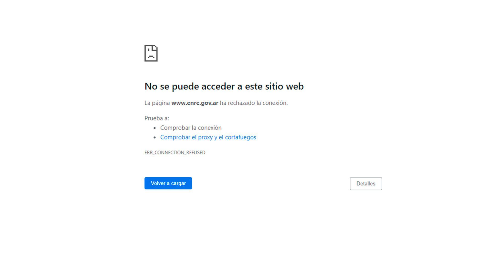 En medio de los cortes de luz y la ola de calor, la página web del Ente Regulador de Electricidad (ENRE) dejó de funcionar.
