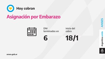 Con la utilización de la tarjeta de débito, hoy cobran la Asignación por Embarazo las titulares con documentos finalizados en 6.