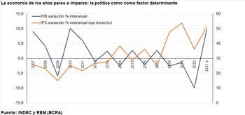 Sobre todo porque la economía, pese a haber cerrado un año de notable recuperación tras el derrumbe de la actividad que sufrió en el primer año con crisis sanitaria, mantiene notable fragilidad en los frentes monetario, cambiario y de calidad de los servicios públicos que derivaron en un claro deterioro del cuadro social, por la aceleración de la tasa de inflación y aumento de la precariedad laboral derivado de la creciente participación de los puestos asalariados no registrados y el cuentapropismo de emergencia.
