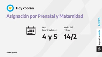 Las titulares de la Asignación por Prenatal y Asignación por Maternidad con documentos terminados en 4 y 5 perciben hoy su prestación.