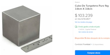 Según pudo averiguar Infobae, los precios oscilan de forma extrema, al igual que pasa con algunas criptomonedas. Los cubos de este particular metal se pueden comprar por USD 15, mientras que algunos más grandes superan los USD 3.000.