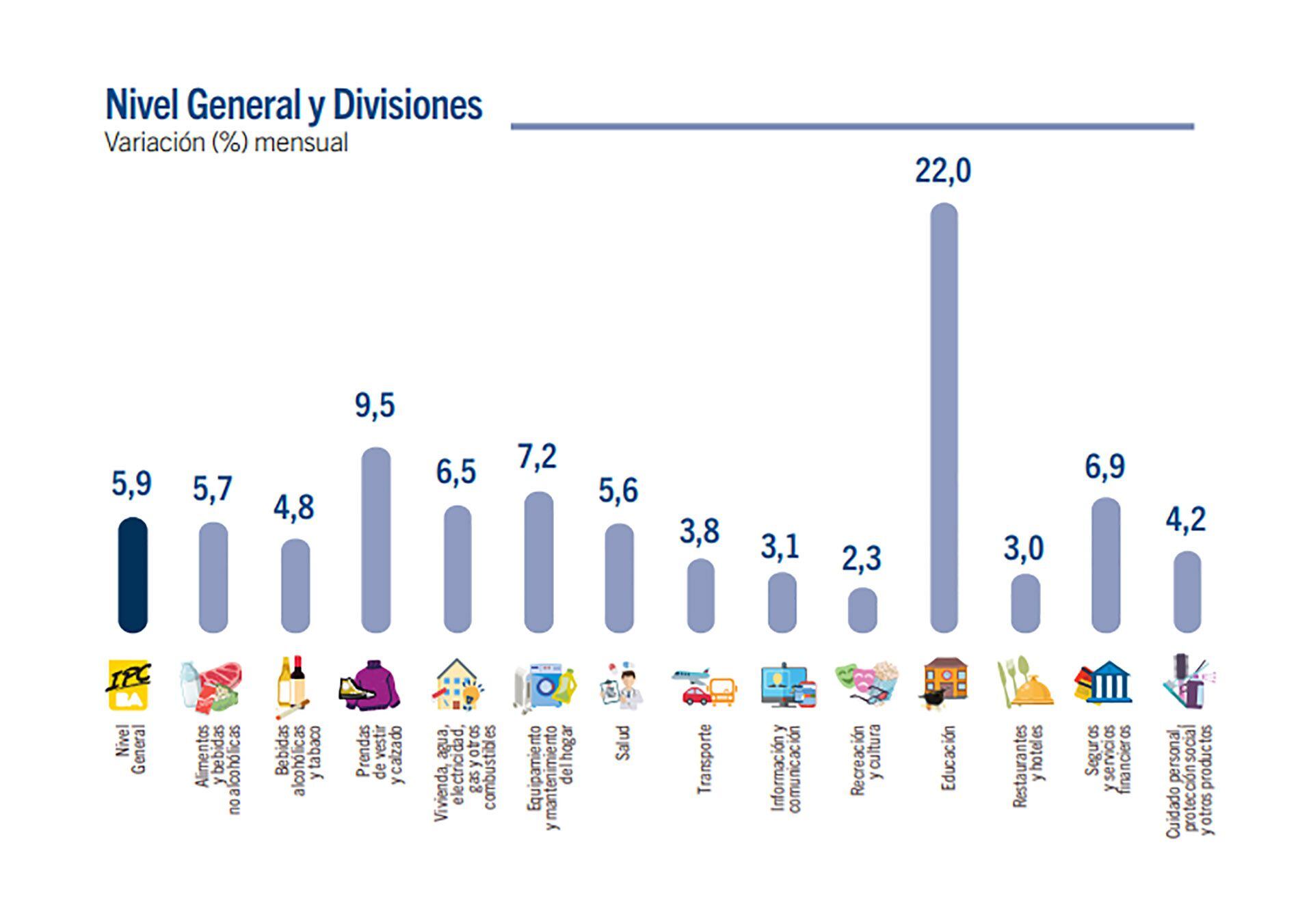 El informe del IPCBA detalló, caso por caso, cual fue la incidencia en el índice de cada una de esas 5 categorías: