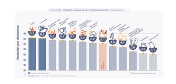 Desde el ministerio de Economía, asimismo, señalaron que “a nivel división, Alimentos y Bebidas no alcohólicas volvió a reducir su tasa de 5,9% en abril hasta 4,4% mensual, alcanzando el menor incremento registrado en 2022, tras registrar aumentos en febrero y marzo, cuando se dio el mayor impacto de los shocks de commodities por la sequía en Sudamérica y el conflicto bélico en Ucrania”.