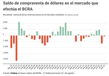 En julio, Banco Central tuvo un saldo neto negativo por su intervención en el mercado de cambios del orden de los USD 1.275 millones el más abultado desde septiembre de 2020, antes de la aplicación del impuesto de 35% como adelanto de Ganancias para la disuadir la demanda minorista de dólares.