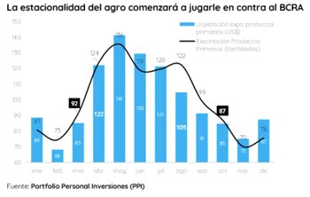 “El verdadero desafío será pasar el verano con este stock. Una vez finalizado el dólar soja, el grueso de la oferta del agro -soja y sus derivados- se retirará, como ocurrió en octubre/noviembre. No es un detalle menor que el promedio de liquidación diaria del agro excluyendo dólar soja fue de apenas USD 54 millones, manteniéndose sin cambios respecto a lo liquidado tras el fin del programa original -US$55 millones por día-. Mirando hacia adelante, la estacionalidad de la liquidación en enero se mantiene inalterada respecto a diciembre y alcanza un valle en febrero (-23% mensual histórico, considerando efecto precio y cantidad)”, advirtieron desde Portfolio Personal.
