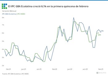 “El IPC GBA mostró un crecimiento del 6,1% entre la primera quincena de febrero y el mismo período de enero, dando cuenta de que el rebote inflacionario de enero se estaría consolidando”, anticipó la consultora, que agregó un dato preocupante: lo que más aumentó en su medición fue la inflación núcleo, con un incremento de 7,3% en las primeras dos semanas. La inflación o IPC núcleo refleja, a decir del propio Banco Central en un comunicado en el que fundamentó su decisión de mantener sin cambios la tasa de interés, “el comportamiento más tendencial del nivel general de precios”, al excluir precios regulados, estacionales y/o con un importante componente impositivo.