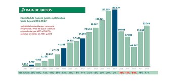 Al 30 de septiembre pasado el número de juicios acumulados superaba los 280.000 casos y en los primeros nueve meses se habían dictado 71.687 sentencias.