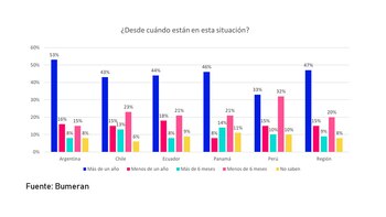Por su parte, Perú es el país que concentra la menor cantidad de trabajadores que experimentan la tendencia hace más tiempo y se posiciona último en el ranking: solo el 33% de los peruanos encuestados se encuentra en esta situación hace más de un año.