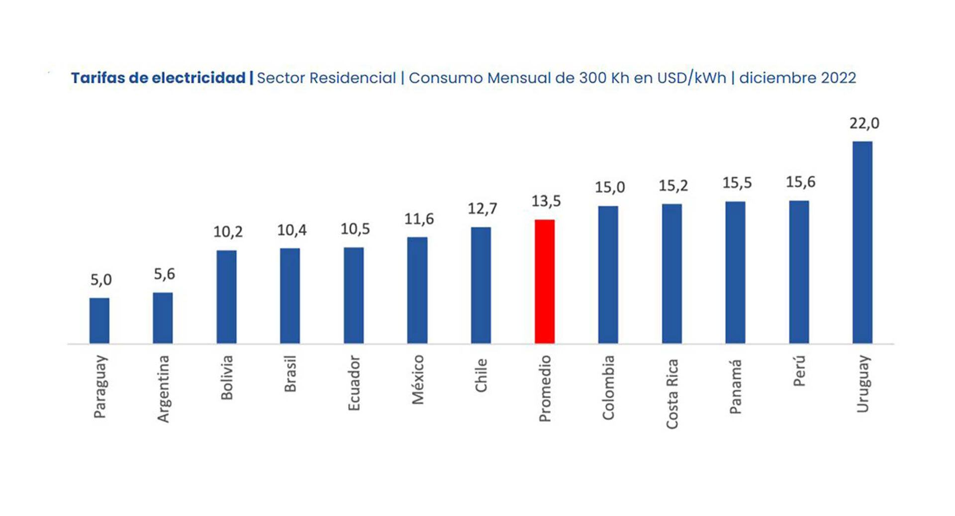 De esas estructuras y extremos surge un promedio según el cual, precisa el Observatorio de Tarifas y Subsidios del IIEP UBA-Conicet, “una familia argentina que consume 300kWh/mes paga una tarifa eléctrica que, medida en dólares, representa la mitad de lo que se paga en Brasil y casi un cuarto que en Uruguay”.