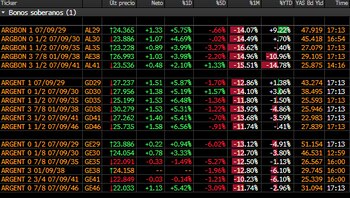 Los bonos soberanos de la Argentina que se negocian en Wall Street, los Globales con ley extranjera, escalaron este miércoles un 5,8% en promedio, mientras que los Bonares en dólares (con ley argentina), mejoraron un 4,1% en promedio en el mercado doméstico.