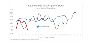 En cualquier caso, el ingreso de divisas mucho menor al previsto impide al Banco Central retener dólares, en la misma proporción que lo hizo durante las versiones anteriores del dólar soja.