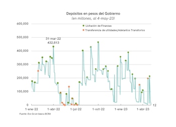 Pero el impacto en las cuentas públicas de la caída de recursos es de tal magnitud que esa estrategia resulta insuficiente. Así es que desde el Palacio de Hacienda recurrieron a todos los depósitos del sector público disponibles, tanto en pesos como en dólares, para aplicarlos a financiar las cuentas. Esto se evidenció también la semana pasada, en consonancia con el adelanto transitorio que el 4 de mayo el Central aportó al Tesoro.