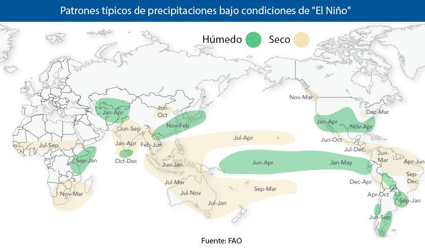El informe, completado a fines de abril, parte de una “actualización” del sistema de Información Global y Alerta Temprana sobre Alimentos y Agricultura (GIEWS, por su sigla en inglés), que pronosticó una mayor probabilidad de ocurrencia de “El Niño” a partir de junio, es decir de aquí a unas pocas semanas.