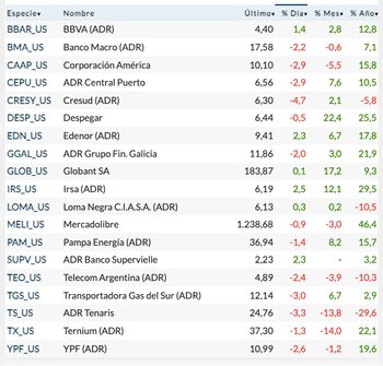 Los bonos negociados en el Mercado Abierto Electrónico (MAE) restaron un 0,5% en su promedio en pesos, y quedaron con una baja del 1,1% en el mes. En tanto, los bonos Globales -en dólares con ley extranjera- cayeron un 1% en promedio en Wall Street, luego de haber avanzado un firme 1,3% el martes. En el mes, los bonos en dólares del canje ganaron un 6% en promedio.