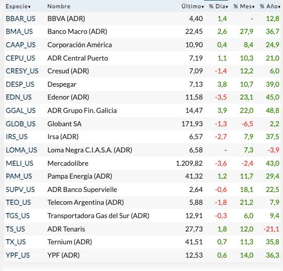 Mercados: la mayor parte de las acciones argentinas que cotizan en Nueva York suben durante el feriado argentino