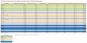 Si se compara un extremo con el otro, se observa que los habitantes de Santa Cruz gastan 8,95 veces más que los de Santiago del Estero en las compras de los supermercados.