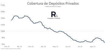 “Teniendo en cuenta los encajes y efectivo en bóveda actuales, la cobertura de depósitos privados asciende (en su media móvil de 10 ruedas) al 96%. Si se toman en cuenta la totalidad de los depósitos (públicos y privados) esa cobertura desciende a 82%”, señaló un estudio de Romano Group.