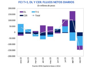 “Una hipótesis que está ganando fuerza es que los tenedores de títulos en pesos parecen tener un miedo generalizado a la dolarización. En caso de concretarse este cambio, es muy probable que estos instrumentos sufran pérdidas significativas en el canje de títulos”, enfatizó en un informe GMA Capital Research. ”La incertidumbre política a tres semanas de los comicios es notable. Además, la expansión fiscal recientemente anunciada por Massa no hace más que agregar ruido a un panorama de extrema fragilidad. Y para colmo, el mundo no acompaña”, señaló.