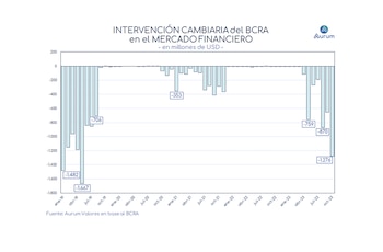 “En octubre, se redujeron a mínimos las autorizaciones para pagos de importaciones mientras se usó la mayor cantidad de dólares de la gestión Massa para intervenir en el CCL”, apuntó en su informe diario Aurum Valores. donde se detalla que las importaciones pagadas estuvieron USD 2.000 millones por debajo del promedio del año, unos USD 2.800 millones contra los “habituales” USD 4.800 millones de este año. Esa cifra ya es 25% menor que el promedio de importaciones mensual en años más normales. Al mismo tiempo, Aurum calculó que la mayor parte de los dólares usualmente destinados al pago de importaciones que se pisaron se destinó a la intervención en la brecha cambiaria. “El uso de divisas para intervenir en el CCL se disparó a casi USD 1.300 millones”, apuntaron en la consultora.