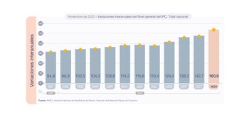 Los datos oficiales de diciembre serán divulgados recién el jueves. Pero consultoras como Ecolatina, por ejemplo, aseguran que el IPC general cerró diciembre en 24,7%. “Nuestro IPC trepó 212,3% en forma interanual, bien por encima del 95,7% i.a. de diciembre de 2022. La aceleración respondió particularmente a la dinámica del desarme de los acuerdos de precios y al traslado a precios del salto discreto en el tipo de cambio oficial de mediados de mes (+118%)”, explicaron.