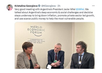 “Muy buena reunión con el Presidente de Argentina Javier Milei. Hablamos sobre los profundos desafíos económicos y sociales de Argentina y las medidas decisivas que se están tomando para reducir la inflación, promover el crecimiento liderado por el sector privado y utilizar el escaso dinero público para ayudar a las personas más vulnerables”, dijo por su parte Georgieva.