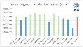 La Bolsa de Comercio de Rosario (BCR) divulgó ayer un informe en el que establece de manera contundente que “la ola de calor excluyó la posibilidad de una súper campaña de soja”. “Entre 2010 y 2020, la Argentina había superado 7 veces la valla de producción de 50 millones de toneladas. Lamentablemente, la primera estimación realizada apunta a una cantidad por debajo de lo esperable en las primeras proyecciones, apuntándose ahora a la posibilidad de obtener 49,5 millones de toneladas”.