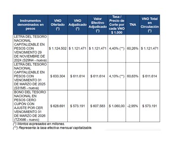 En lo que hace a esta licitación en particular, no se llegaron a cubrir los vencimientos por primera vez en la actual gestión. “No solo el Tesoro no capturó como financiamiento neto en la licitación de hoy todo lo que se emitió en últimas ruedas por BID. Además, es la primera con financiamiento neto negativo. Por un pelín. Pero lo es”, explicó el economista Gabriel Caamaño. El vencimiento de $2,78 billones no pudo ser cubierto en su totalidad con los $2,74 billones que fueron adjudicados (rollover estimado del 98%).