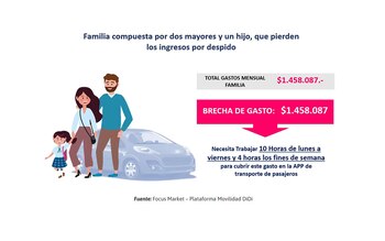 Un conductor que maneja 5 veces a la semana, 9 horas por día, puede generar ingresos entre $200.000 y $300.000 semanales. En el ejemplo considerado, debido a que la brecha entre ingresos y gastos es de -$1.146.247, necesitarían sumar 9 horas diarias, 5 veces por semana, de trabajo en la plataforma. Dada la jornada laboral como empleado/a administrativo/a, probablemente esta familia deba incorporar horas de trabajo durante los fines de semana.