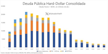 Pero en los últimos días, el movimiento fue el inverso. Con la suba de la última semana, los agentes del mercado corrieron a calcular el total de vencimientos de la deuda el próximo año. La cifra, de USD 17.000 millones, resulta fácil de refinanciar en un contexto de estabilidad macroeconómica, pero luce como un enorme desafío para un país con cepo cambiario. De ahí la ansiedad del mercado y hasta la impaciencia por ver avances más contundentes en esa dirección.