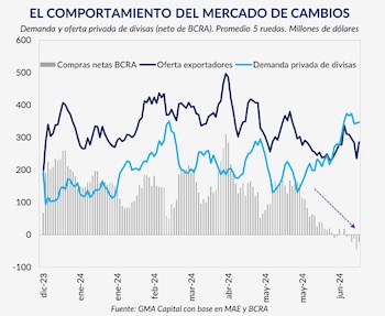 “La duda de los mercados pasa por el aumento de la presión cambiaria, con un BCRA que no está acumulando reservas y una inflación que sigue bastante por arriba del 2% mensual del tipo de cambio. Esa es la gran duda que no se ha respondido”, explicó el economista Lorenzo Sigaut Gravina.