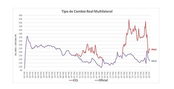 El tipo de cambio real calculado con la cotización del dólar en el mercado CCL (Contado con liquidación) se ubica al nivel que tenía en 2014, antes de que en la campaña electoral de 2015 se comenzara a hablar de una futura unificación.