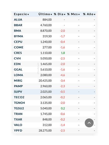 Diferente fue el recorrido para las acciones. Tanto los papeles que integran el panel líder del Merval retrocedieron hasta 4,6% como el caso de Loma Negra o 3,4% en el de Mirgor, como las acciones de empresas que cotizan en la bolsa neoyorquina. En ese caso, los ADRs también cerraron casi todos a la baja, con recortes similares a los detectados en la plaza local: Loma Negra perdió 3,6% mientras que el Pampa 3,1% y Banco Macro, 2,9%.
