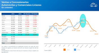 En el acumulado de enero a septiembre, la producción de las terminales fue de 362.433 vehículos de pasajeros y utilitarios, y esto representa un 22,1 % por debajo de las 465.236 unidades de los primeros nueve meses de 2023.