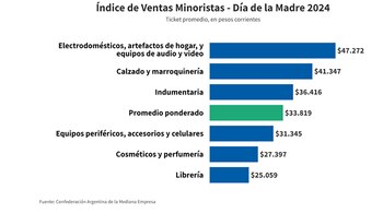 Por último, en Librería hubo una mejora del 10,3%, gracias a promociones y compras de último momento. El ticket promedio fue de $25.059, el más bajo de todos los rubros relevados. En algunas ciudades la fecha coincidió con ferias del libro que empujaron esa opción de regalo.